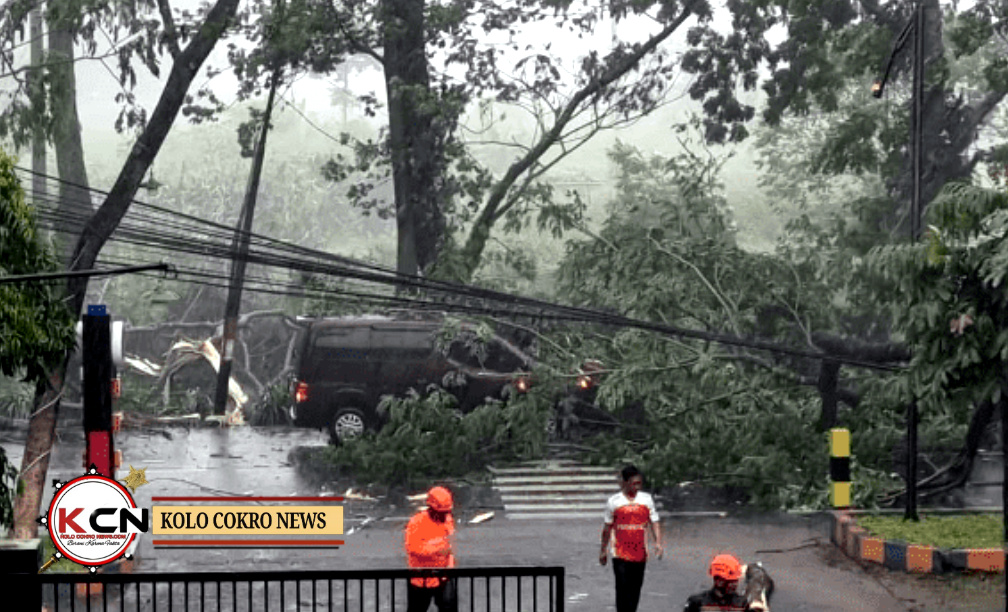 – Hujan deras yang mengguyur wilayah Kota Malang pada Minggu sore (02/11/2025) kembali memicu insiden pohon tumbang di sejumlah titik. Salah satunya terjadi di kawasan Kecamatan Kedungkandang, tepatnya tak jauh dari kantor BPBD Kota Malang.
