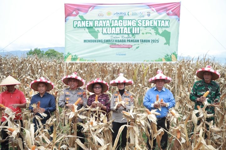Polres Samosir bersama Forkopimda Kabupaten Samosir melaksanakan Panen Raya Jagung Serentak Kuartal III Tahun 2025 di Dusun I, Desa Situngkir, Kecamatan Pangururan, pada Sabtu (27/9/2025).