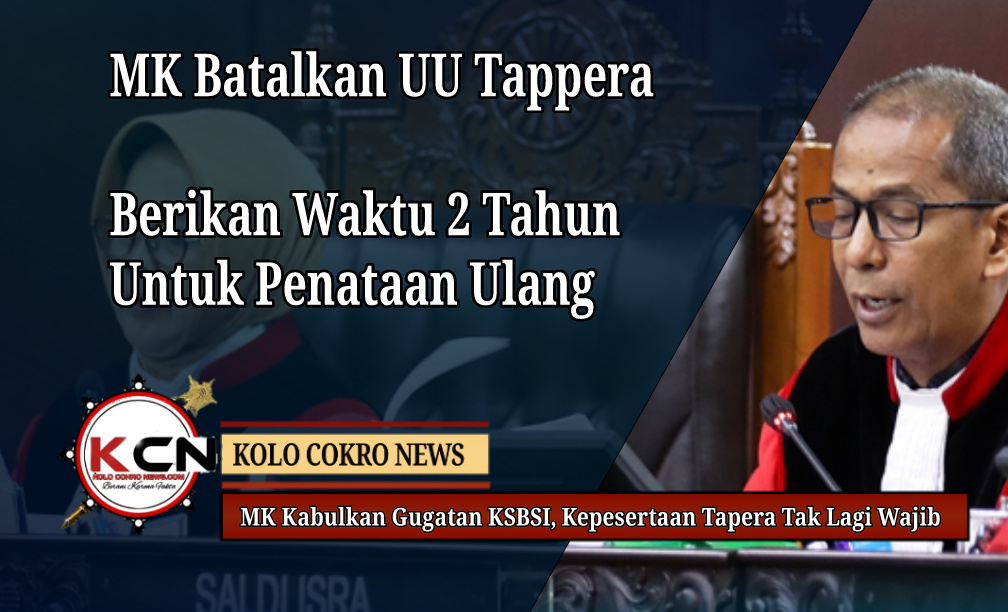 Senin, 29 September 2025 – Mahkamah Konstitusi (MK) mengabulkan seluruh permohonan uji materi yang diajukan Konfederasi Serikat Buruh Seluruh Indonesia (KSBSI) terkait kewajiban kepesertaan pekerja dalam program Tabungan Perumahan Rakyat (Tapera). Putusan tersebut tertuang dalam perkara Nomor 96/PUU-XXII/2024 yang dibacakan dalam sidang pleno di Gedung MK, Jakarta.
