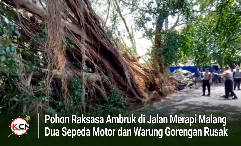 — Suasana siang di Jalan Merapi, Kecamatan Klojen, Kota Malang, mendadak panik setelah sebuah pohon besar tumbang pada Rabu (10/12/2025) sekitar pukul 11.00 WIB. Insiden tersebut tidak menelan korban jiwa, namun mengakibatkan dua unit sepeda motor serta sebuah warung gorengan mengalami kerusakan cukup parah.