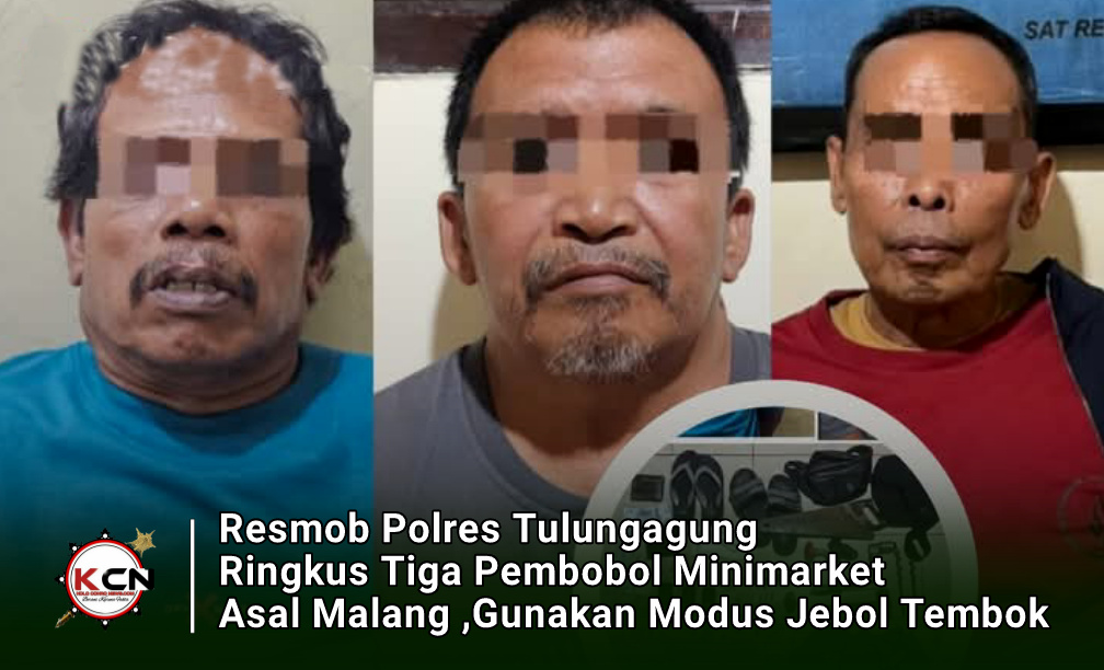 Rabu (15/4/2026) – Kasus pembobolan minimarket di wilayah Tulungagung akhirnya berhasil diungkap aparat kepolisian. Tim Resmob Macan Agung Satreskrim Polres Tulungagung menangkap tiga pelaku yang diketahui berasal dari Malang setelah diduga terlibat dalam aksi pencurian di dua gerai minimarket dengan modus menjebol tembok bangunan.