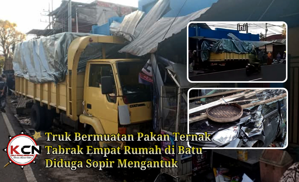 Truk Bermuatan Pakan Ternak Tabrak Empat Rumah di Batu, Diduga Sopir Mengantuk