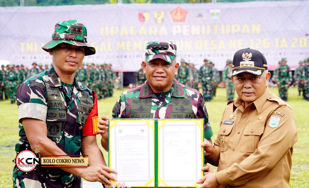 — Penutupan TNI Manunggal Membangun Desa (TMMD) ke-126 Tahun Anggaran 2025 di Desa Lebakharjo, Kecamatan Ampelgading, Kabupaten Malang, berlangsung penuh kehangatan dan rasa kebersamaan, Kamis. Seremoni penutupan dihadiri langsung oleh Wakil Kepala Staf Angkatan Darat (Wakasad) Letjen TNI Muhammad Saleh Mustafa, bersama Pangdivif 2 Kostrad Mayjen TNI Susilo, Pangdam V/Brawijaya dan unsur Forkopimda Malang Raya.